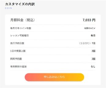 毎月のコイン数をカスタマイズ!平日しかレッスンしない人はちょっとお得に