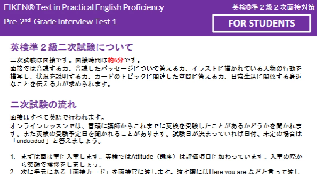 という課題英検®二次試験対策などは、個別に
