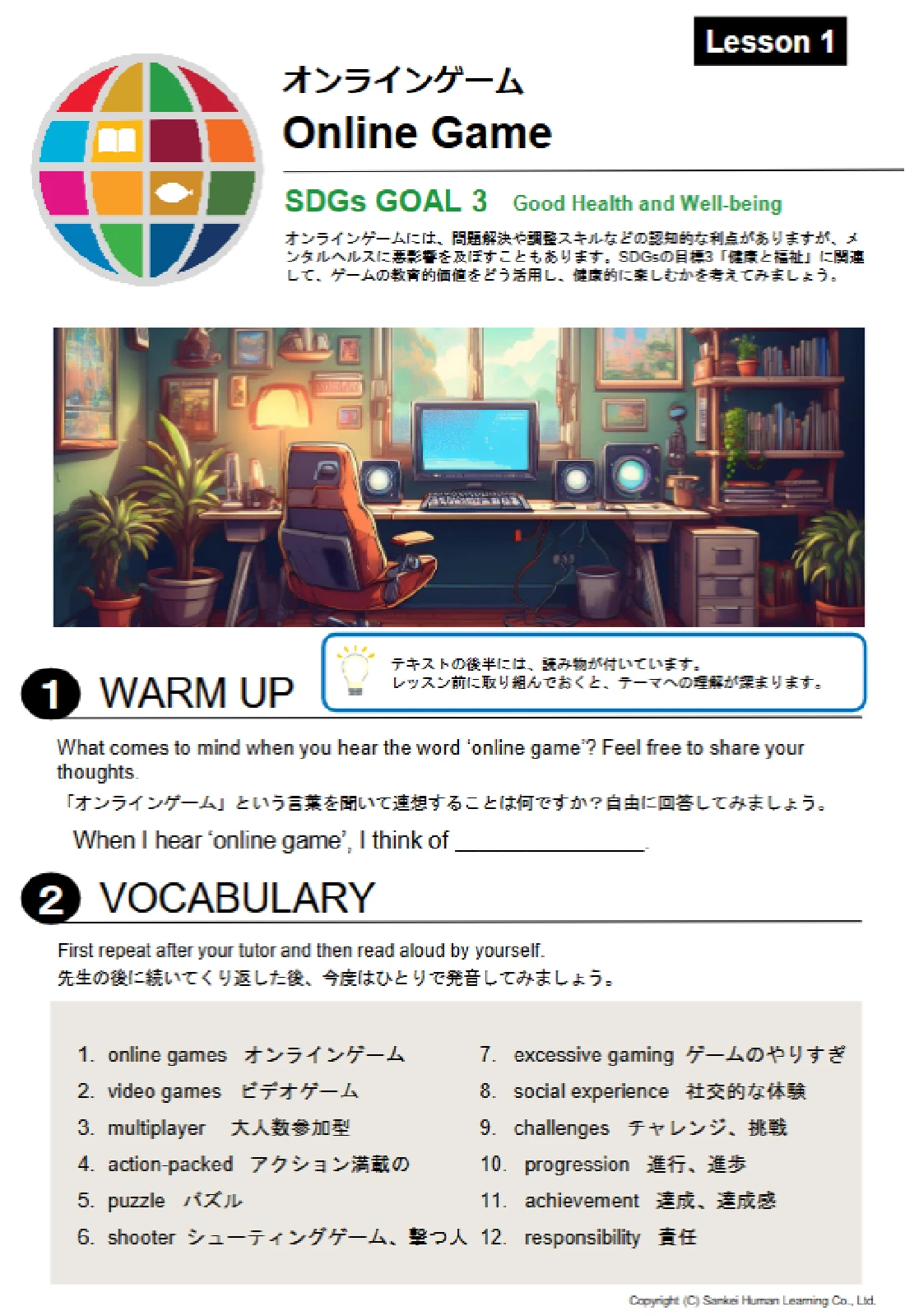 産経オンライン英会話Plusでは、『TAGAKI®』シリーズのテキストを、オンラインレッスンのテキストとして再構成し、組み立てた文章を「話して伝える」レッスンを提供しています。