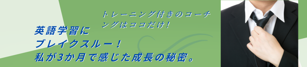 ———————————————————————————————————–末光コーチ、3か月間本当にありがとうございました。入会時に想定していたとおり、やはり仕事との両立が大変でしたが、その一方で、英語学習においてはじめてブレイクスルーを感じることができました。ひとえに末光さんのご指導のおかげであったと大変感謝しております。本当にありがとうございました。また4月に戻ってきますので、その際はどうぞよろしくお願いいたします。