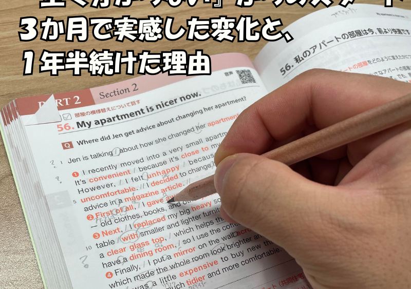 中にはまったく聞き取れないものもあり、まだまだ力不足だと感じることもありましたが、続けていくうちに少しずつ聞き取れる問題が増えていき、自分の成長を実感できました。